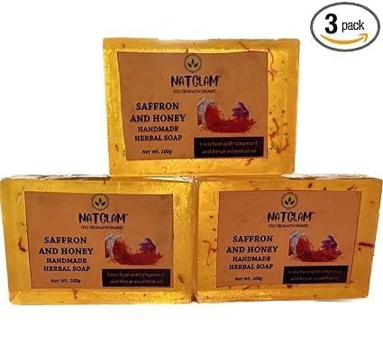 Saffron & Honey Handmade Natural Bath Soap | Moisturizing Soap | Pigmented Soap | Enriched with Vitamin E (Pack of 3) 3X100 Grm