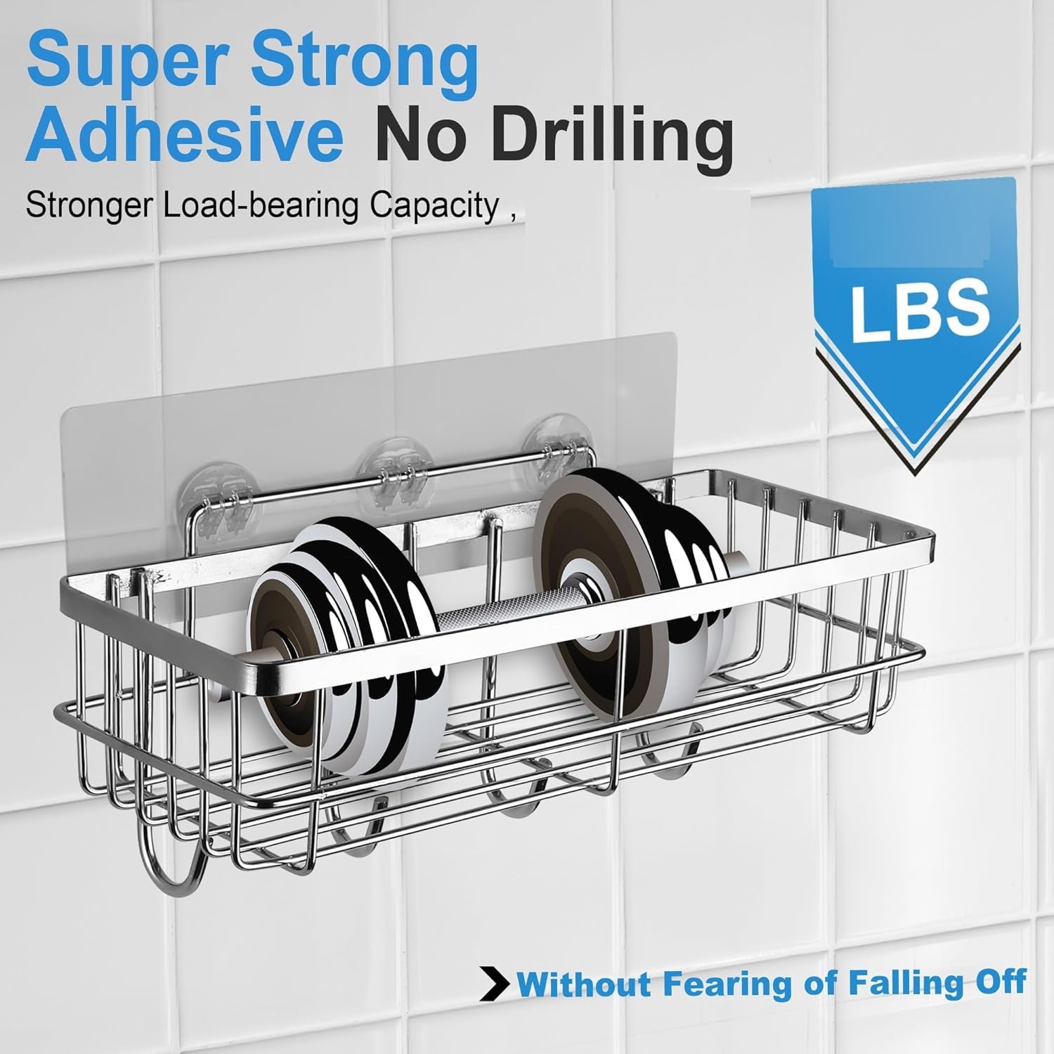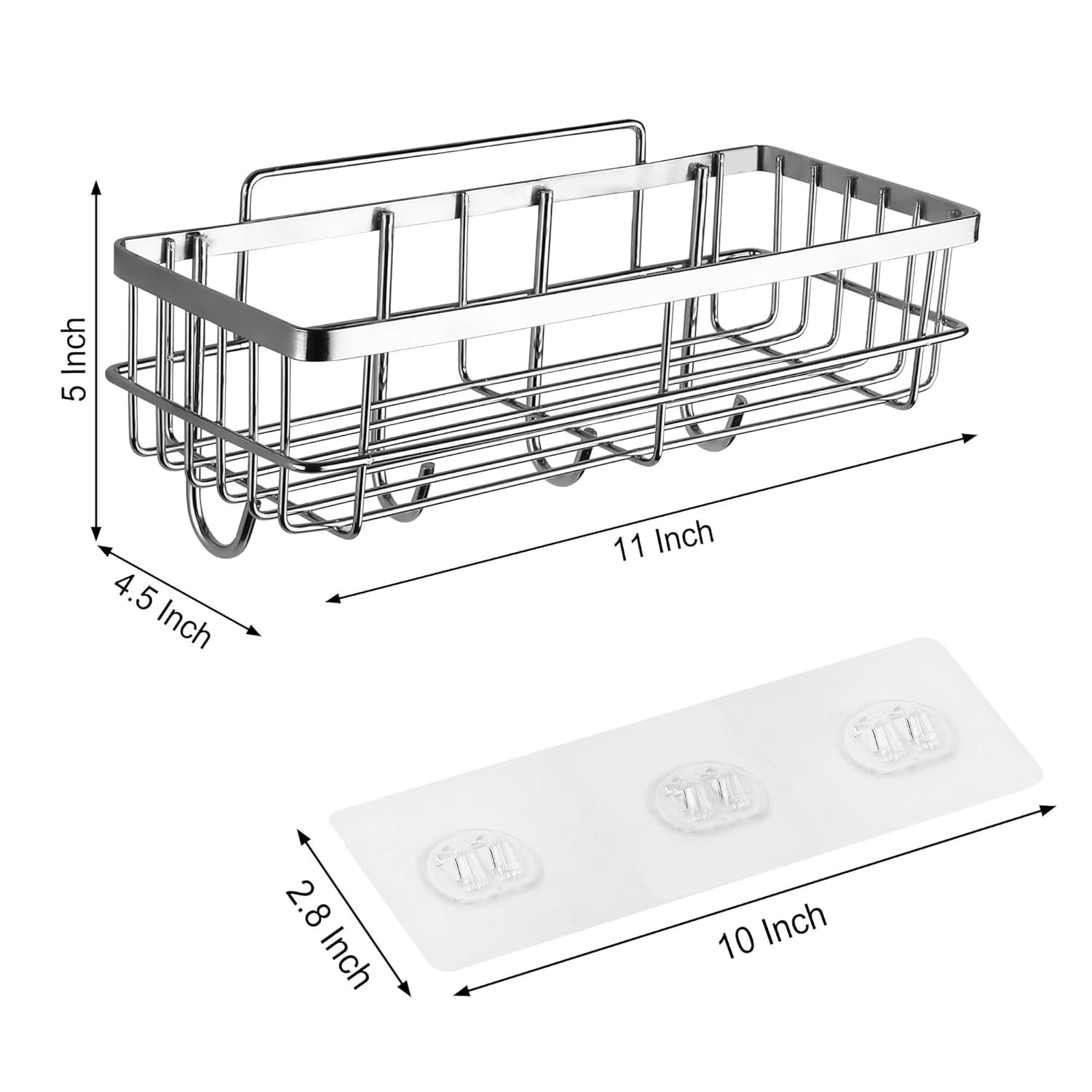 SaleOn Stainless Steel Adhesive Rack for Bathroom & Kitchen | Rust-Free Wall Mounted Shelf with Hooks | Strong Grip, Drainage Design, No Drill Multipurpose Organizer | Storage Adhesive Guaranteed