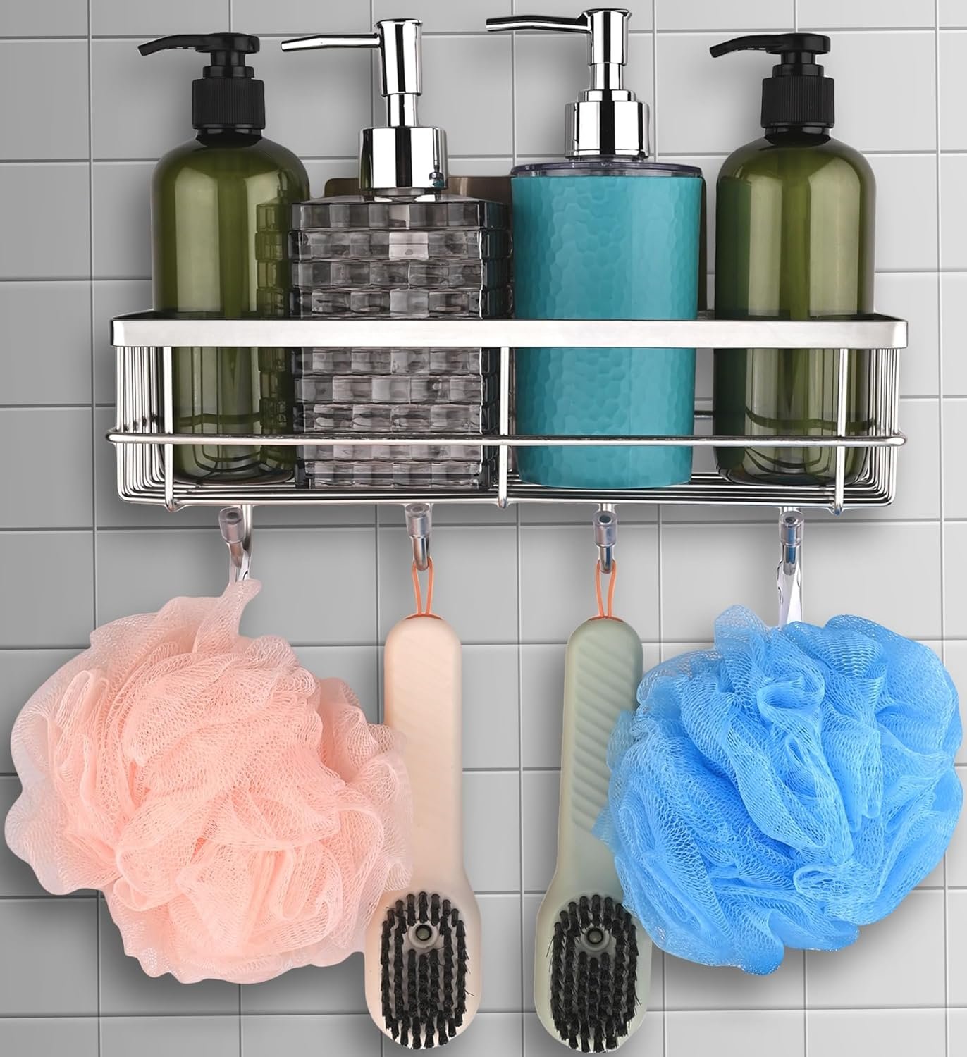 【4 HANDY HOOKS】- The four hooks provide ample hanging space for kitchen utensils, towels, loofahs, robes, or other bathroom accessories, keeping your space neat and tidy.