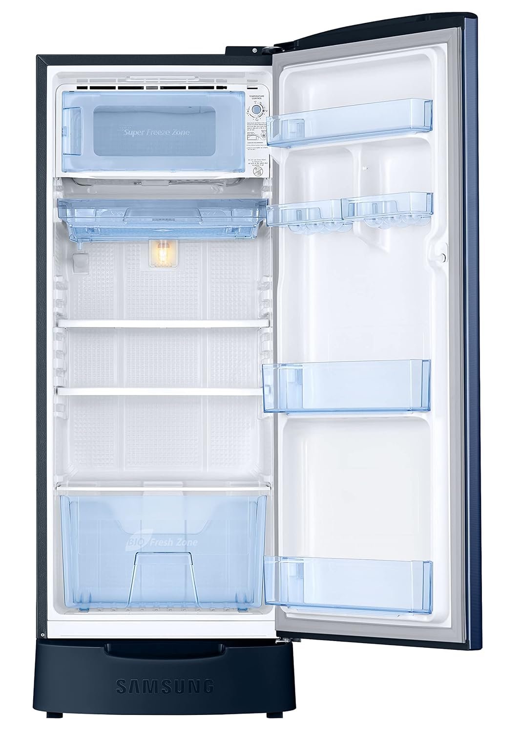 Samsung 183 L, 3 Star, Digital Inverter, Direct-Cool Single Door Refrigerator (RR20C1823CU/HL, Camellia Blue, Base Stand Drawer)