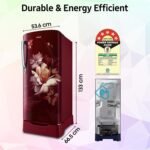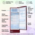 Direct Cool Refrigerator: Stylish Single Door Refrigerator with Modern Midnight Blossom Red pattern. Enjoy powerful cooling that can last longer
