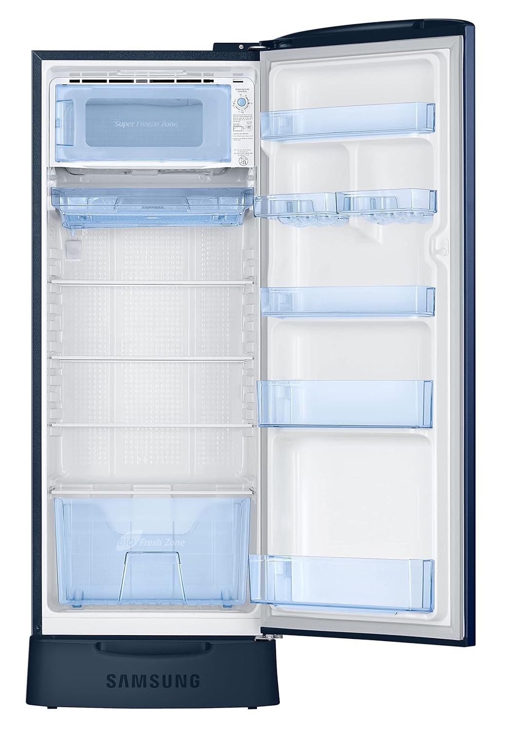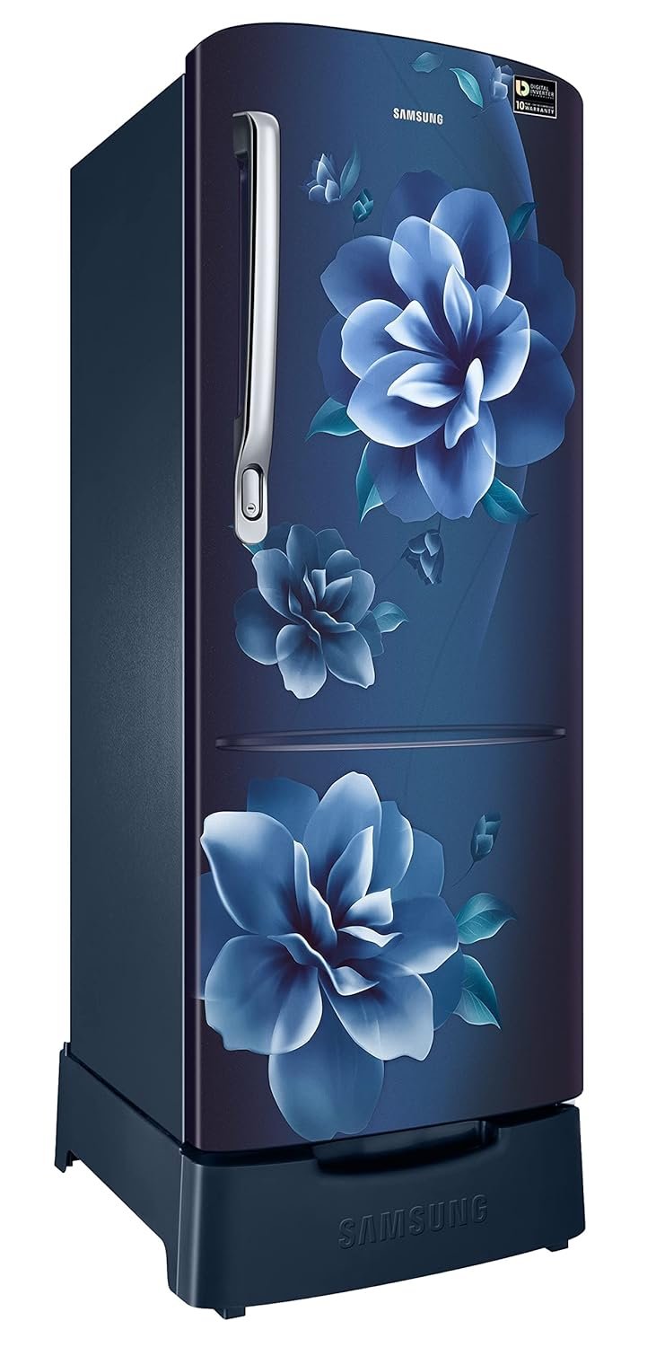 Samsung 223L 3 Star Inverter Direct-Cool Single Door Refrigerator Appliance (RR24C2823CU/NL,Camellia Blue) Base Stand Drawer