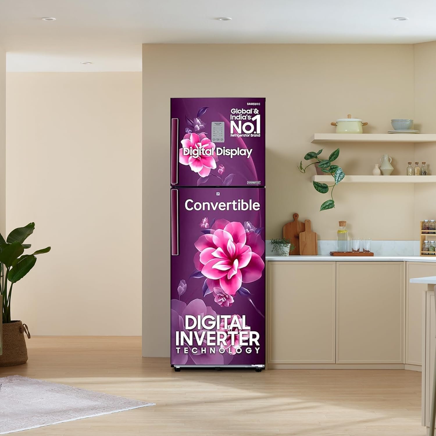 Samsung 236 L, 2 Star, Convertible, Digital Inverter with Display Frost Free Double Door Refrigerator (RT28C3922CR/HL, Red, Camellia Purple)