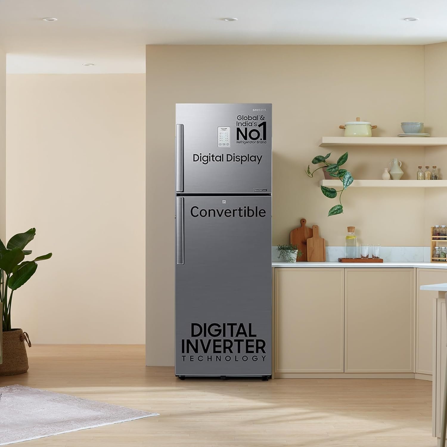 Samsung Exclusive Features : Convertible | Digital Display with Easy Touch Control | Power Cool | Fresh room | Easy Slide Shelf | All Round Cooling
