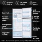Additional Features : Stabilizer Free Operation (100v – 300v) | Multi Flow | Up to 15 Days of Fresh Food | Recess Handle | Door Alarm | Easy Clean Back | Veg Box | Big Bottle Guard (Deep Door Guard) | LED Light