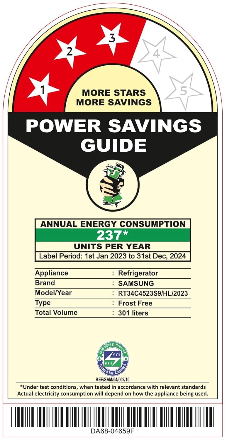 Energy Rating : 3 Star Energy Efficiency