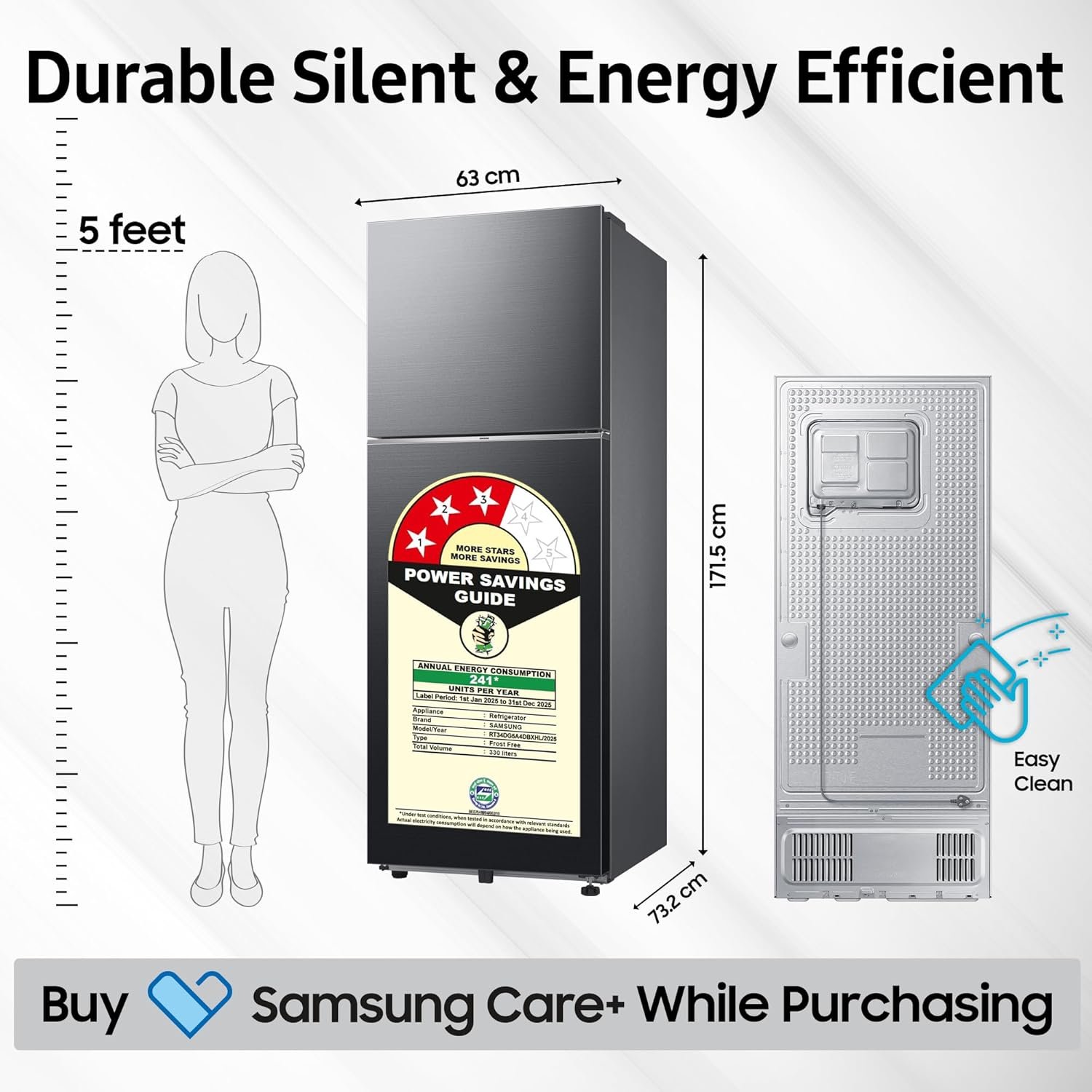Energy Rating : 3 Star Energy Efficiency | Annual Energy Consumption: 241 Kilowatt Hours Per Year