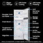 Frost Free Refrigerator with Bespoke AI: Premium Auto Defrost with powerful cooling and long lasting freshness. Powered with AI, get additional 10% Energy Savings with AI Energy Mode. Manage your flexible storage needs with Convertible 5in1 technology : |Normal Mode|Extra Fridge Mode|Seasonal Mode|Vacation Mode|Home Alone Mode