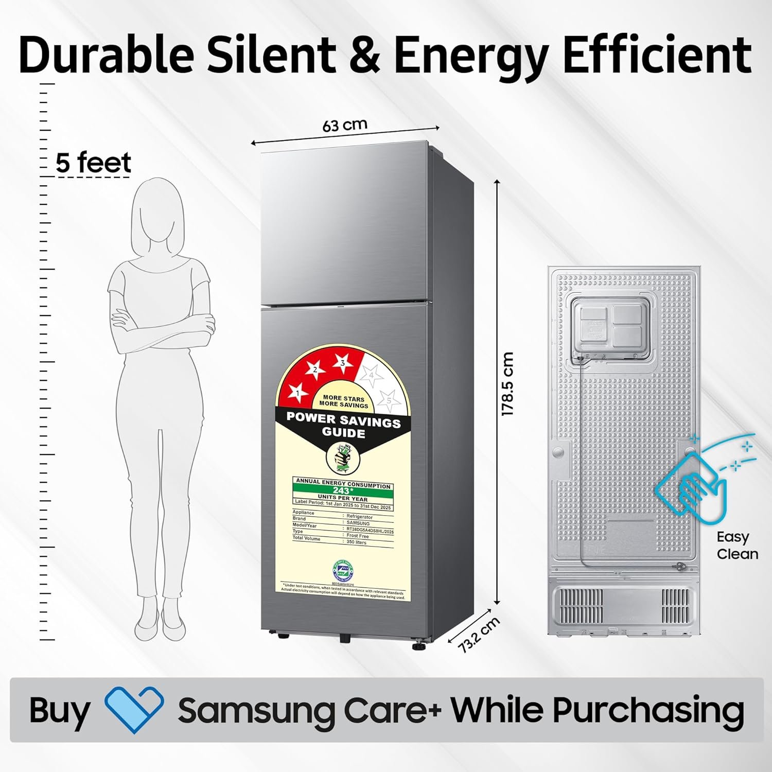 Energy Rating : 3 Star Energy Efficiency | Annual Energy Consumption: 243 Kilowatt Hours Per Year