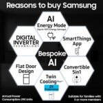 Special Features : AI Energy Mode | SmartThings | Convertible 5-in-1 | Twin Cooling Plus | Power Freeze | Power Cool