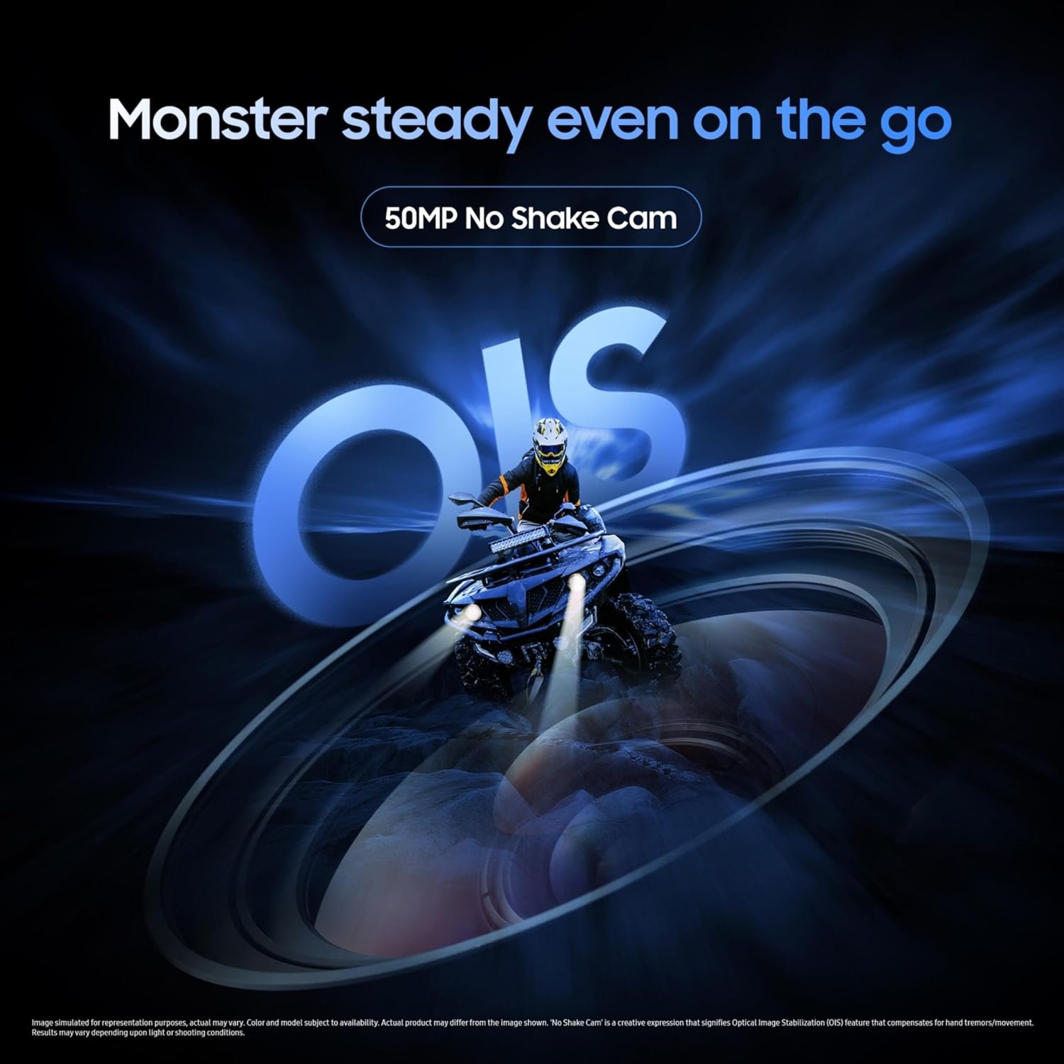 Monster Camera – 50MP OIS (F1.8) Main Wide Angle Camera + 5MP (F2.2) Ultra Wide Angle Camera + 2MP Macro Angle Camera, 13MP (F2.0) Selfie Camera, Video Maximum Resolution of FHD (1920 x 1080) at 30fps.