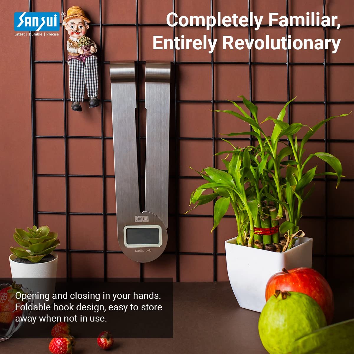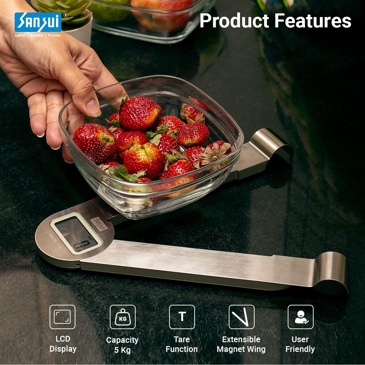Sansui Digital Kitchen Scale with Extensible Magnetic Wings & Food Weight Machine for Health, Fitness, Home Baking & Cooking, (5 kg, Stainless Steel)