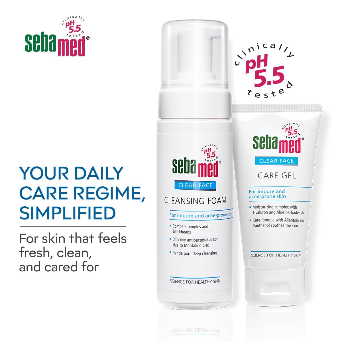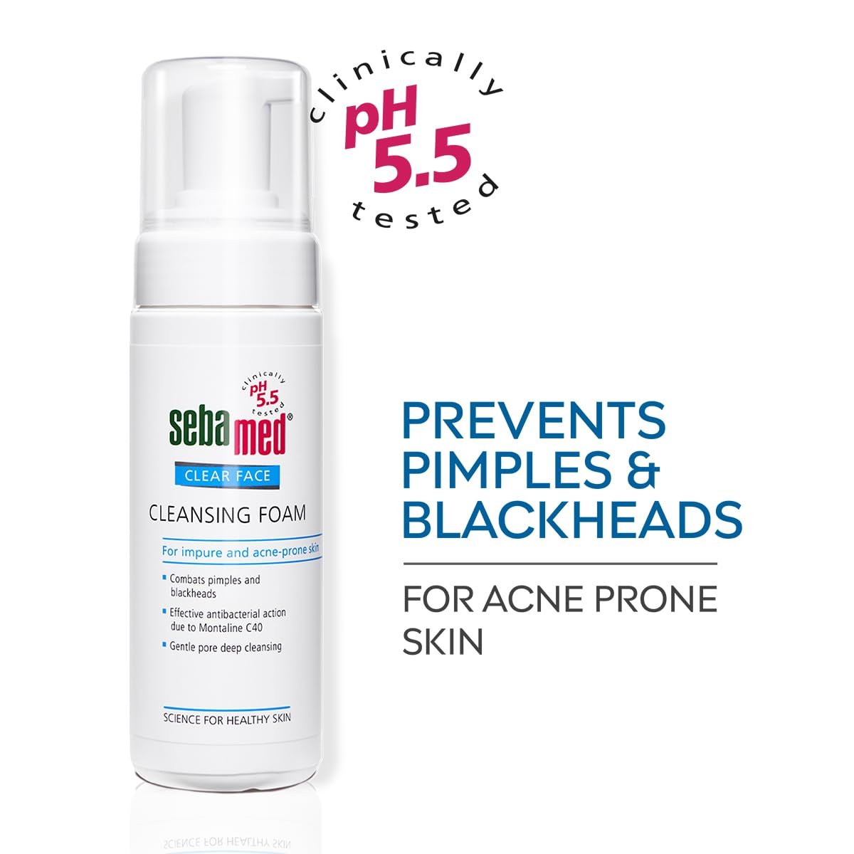 Sebamed Clear Face Cleansing Foam for Acne prone Skin 150 ml I pH 5.5 I Gentle, Effective hydrating cleanser for pimples | Face wash |men & womenl Oil Free l Clinically proven l Toxin free