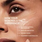 Soaps and cleansers with a neutral or alkaline pH compromise the natural protective functions of the skin’s acid mantle, increasing the risk of dehydration and skin reactions. The pH 5.5 promotes the natural barrier function of the skin’s acid mantle. It helps to protect against dryness as well as external irritants, allergens, and harmful micro-organisms. Efficient cleansing for oily and
