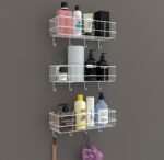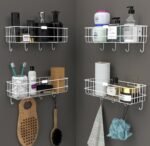 MULTIPURPOSE RACKS – While designed for bathroom use, these storage holders can also be used in other areas of your home, such as the kitchen or bedroom, to keep various items organized and easily accessible. Hooks are perfect for hanging towels, robes, and other accessories.