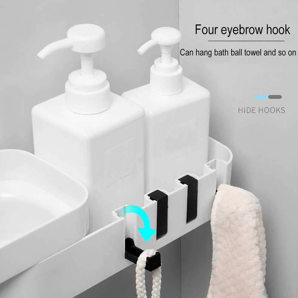 SEVIA Rotating Wall Mounted Corner Bathroom Shelf Storage Organizer with Hidden Hooks for Bathroom Home Kitchen
