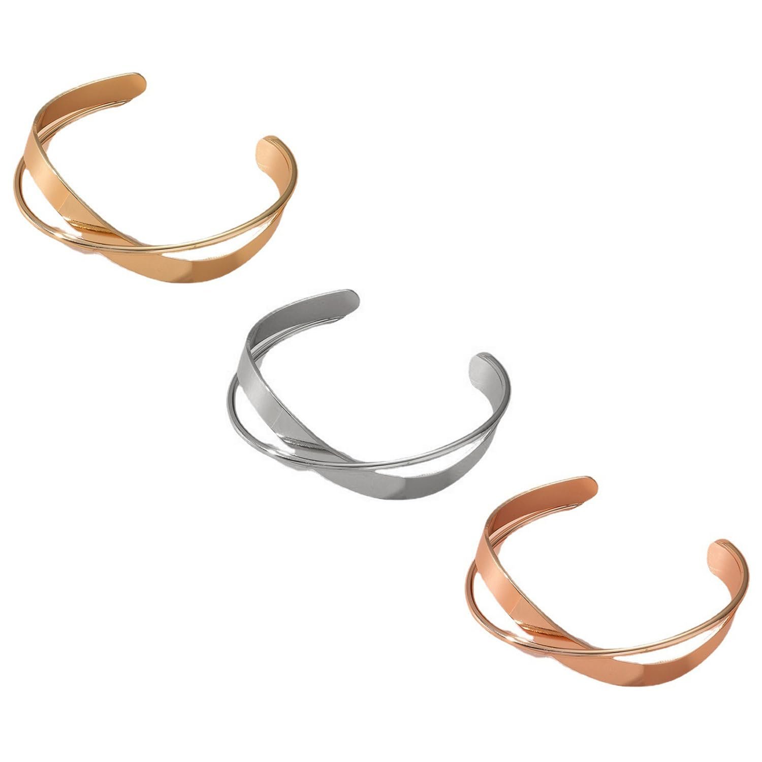 Shining Diva Fashion 3 pcs Double Infinite Twisted Cross Minimalist Open Kada Cuff Bracelet for Girls and Women
