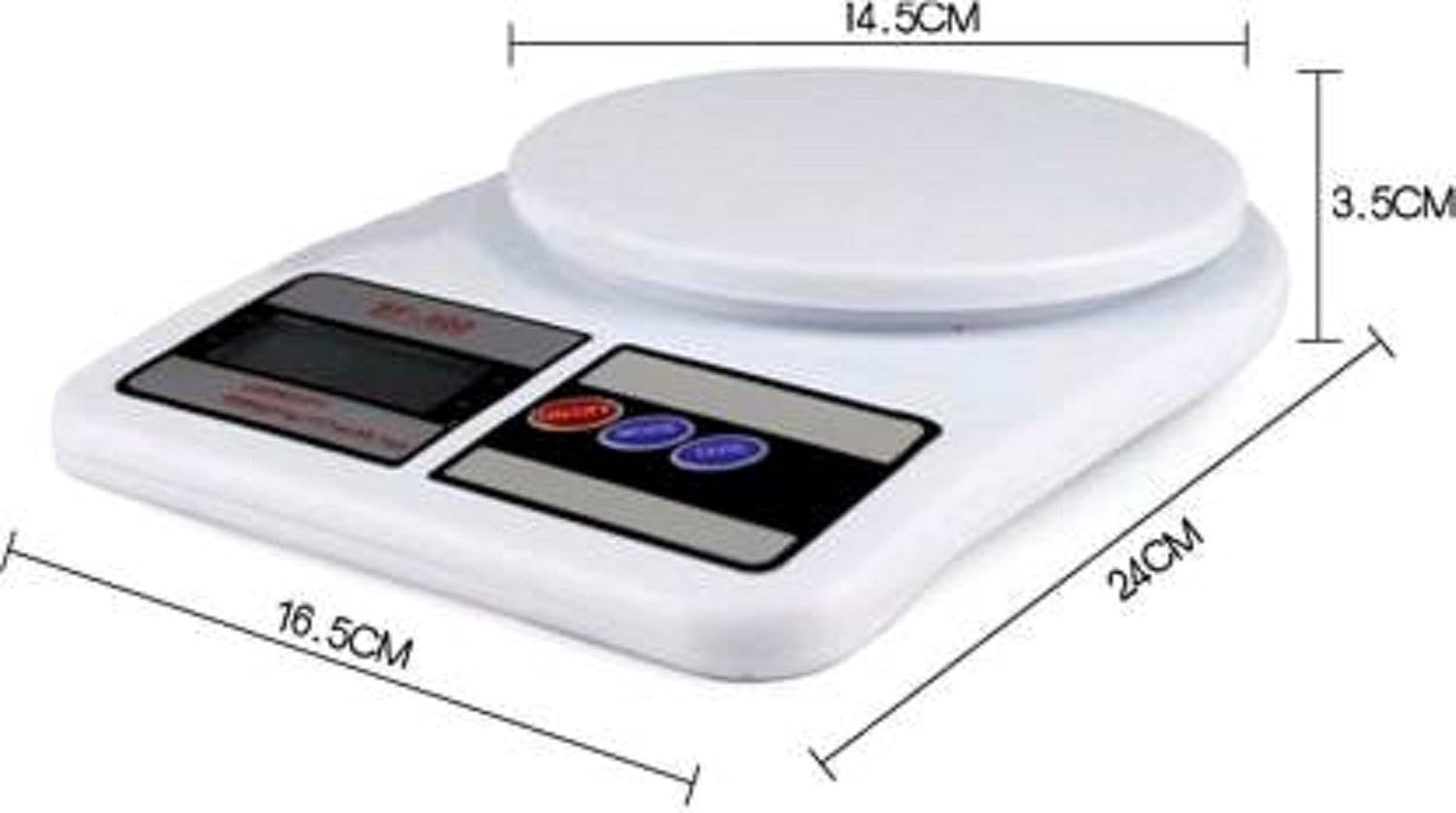 Kitchen weight scale that automatically locks the reading when data is stable Low power consumption, Low battery indicator, Tare function. Maximum Capacity 10kg The scale will automatically switched off when it is in non-use condition in order to save power High-precision tension meter sensing system, 1G Measuring Increments. Color: White, With 3 Button on the scale, that’s on/off, Mode, Tare, Material: PVC Wide LCD screen display, easy to read.