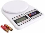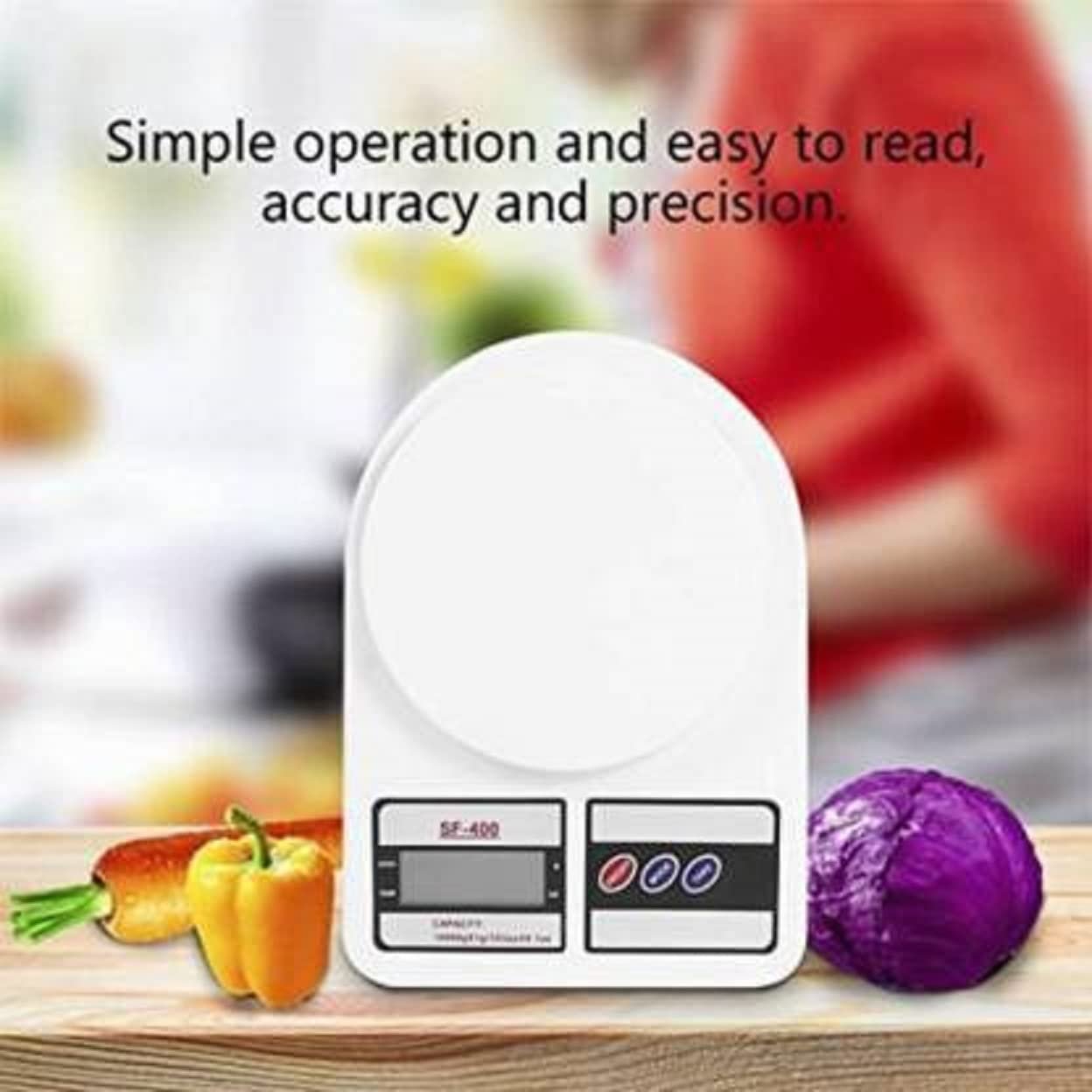 A quality-built precision electronic digital kitchen scale with a large digital readout, perfect for measuring ingredients up to 10 kilograms.Switchable to Imperial measures (oz) so you can easily refer to any cookbook!The Tare function lets you measure different ingredients into the same container, a press of a button will set the scales to 0 at any weight.You can even set to zero and subtract weight as it shows you how much weight you have removed!With measurement graduations of 1 gram, this scale provides all the accuracy that is required in the kitchen.Wide LCD screen display, easy to read.It ensures accurate weighing even in high humidity areas as its splash-proof design.The scale has multiple features like the Tare function, Unit Exchange, Overload Indicator, etc.