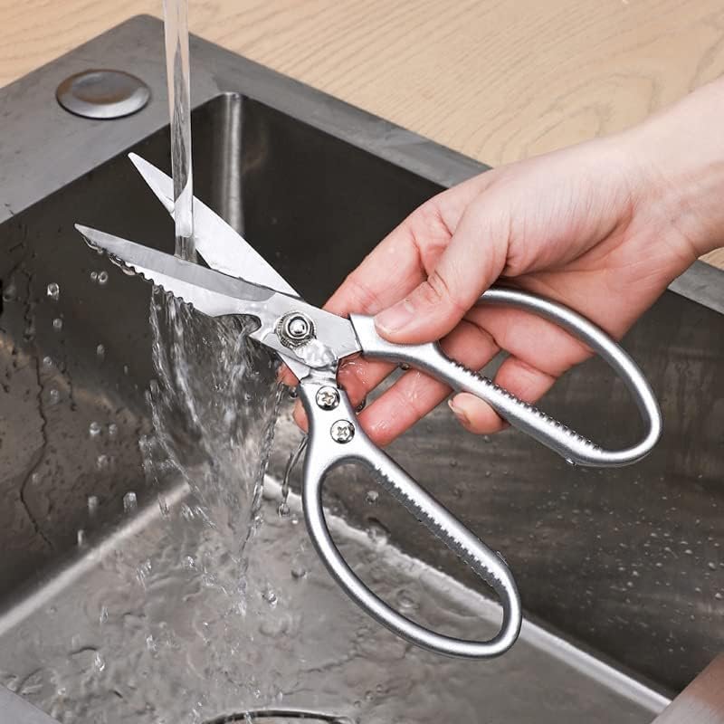 Strong and Durable & Easy To Clean and Maintain: stainless kitchen shears ,the blades have designed grooves to prevent slip when cutting food, making it easier to cut food, Blade Edge Thicker,excellent corrosion resistance, heat resistance, The high quality stainless steel won’t get rusty and Handle with rivet reinforcement handle.Tip: Please do not immerse the scissors into the water and please wipe it dry after cleaning..