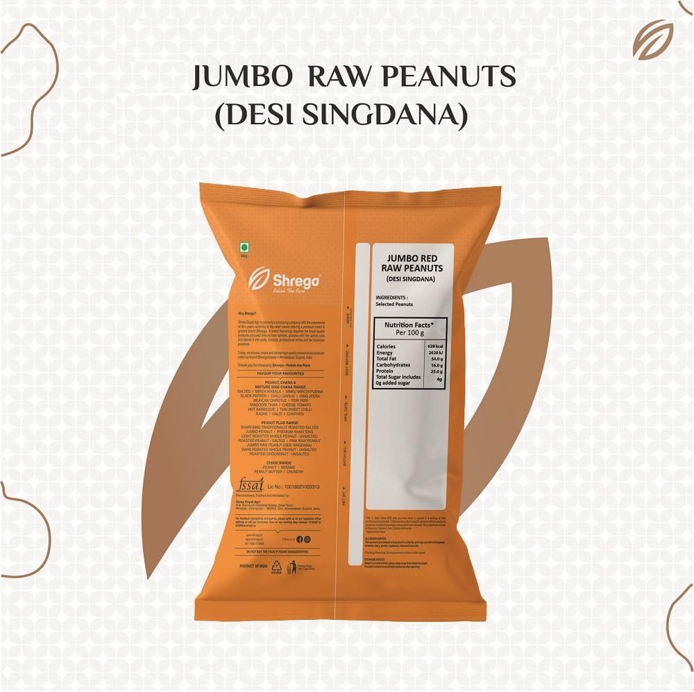 Shrego Jumbo Raw Peanut, Desi Singdana, Vacuum Packed (1 kg) Premium Moongfali