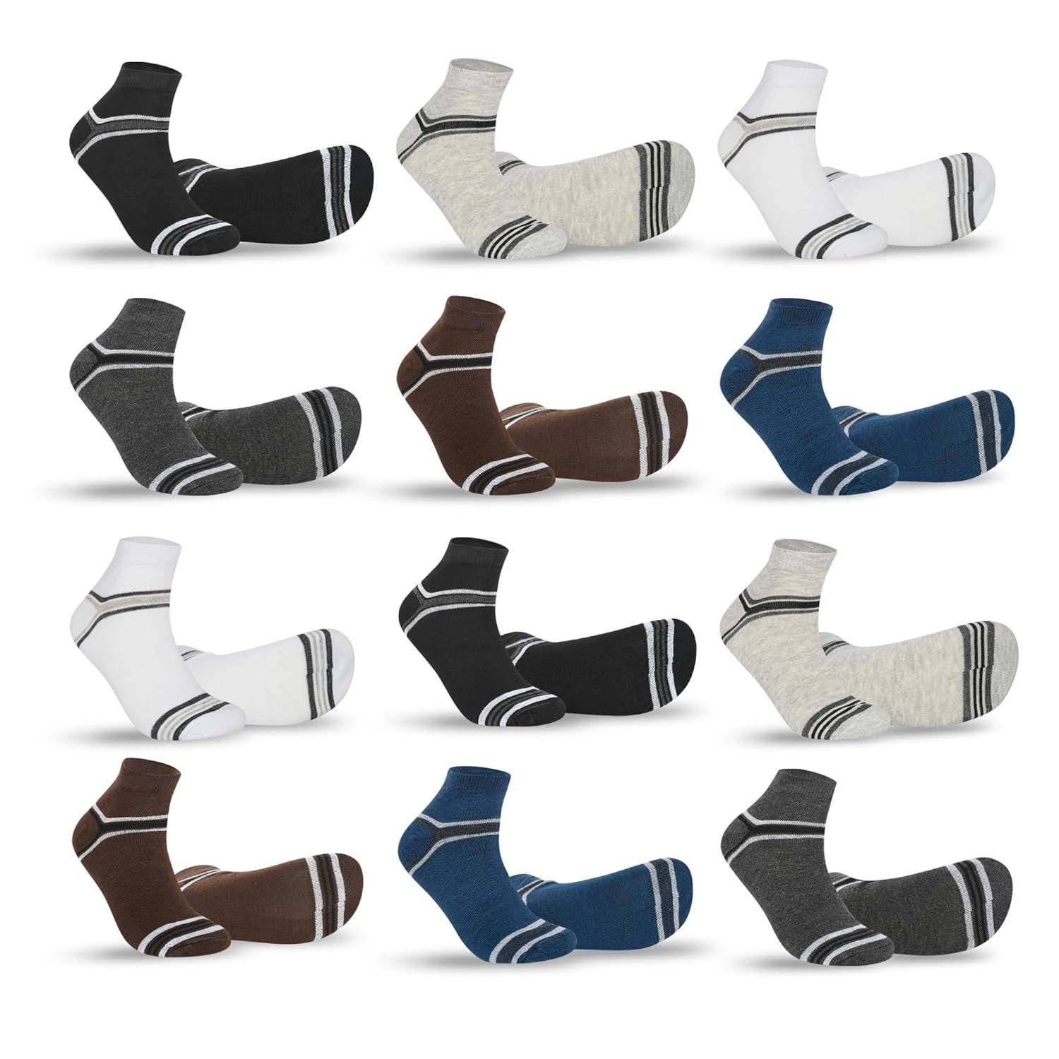 SJeware 12 Pairs Solid Cotton Ankle Length Socks for Men & Women, Multicolor, Pack of 12, Free Size