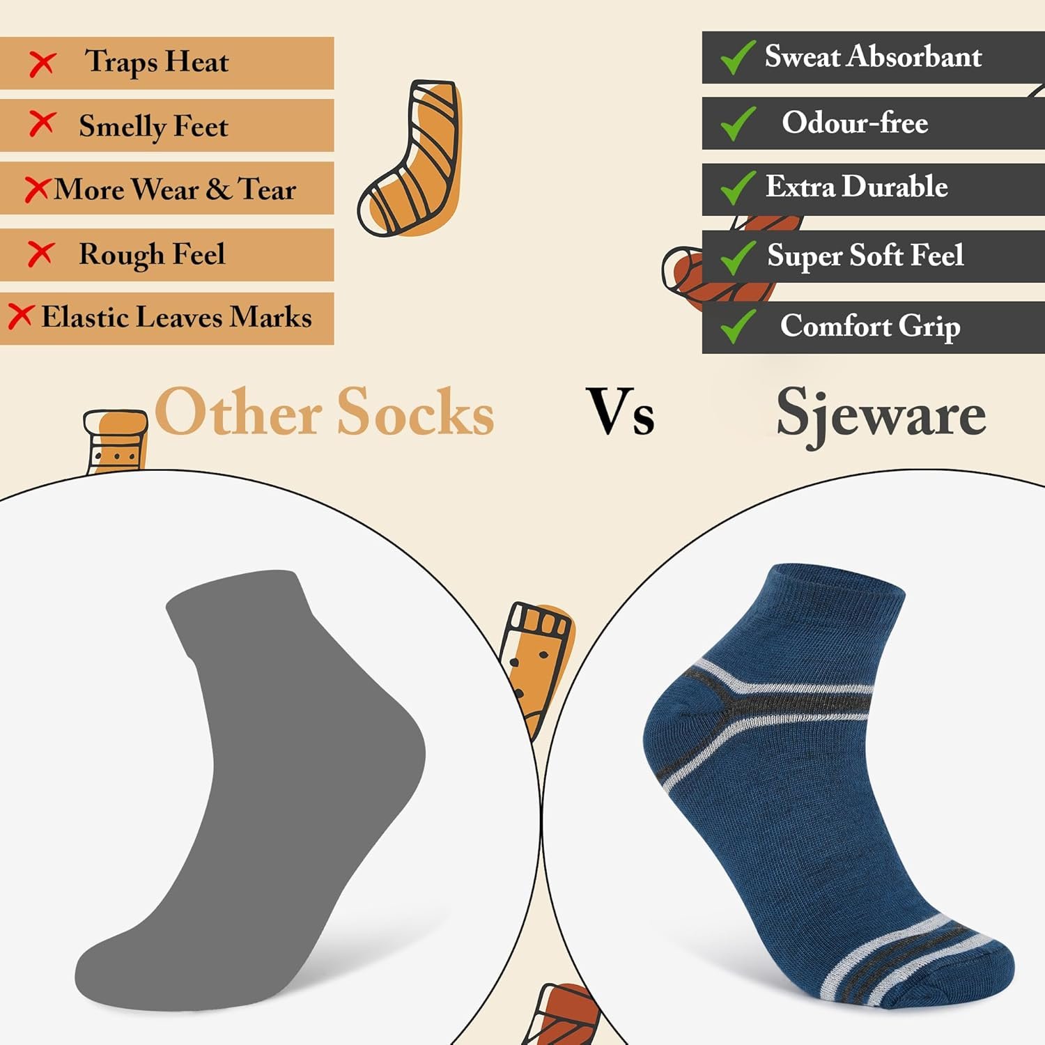 Sjeware(The socks company) branded socks are made using cutting-edge technology that incorporates state of the art knitting techniques to produce socks that offer maximum activewear comfort to your feet. Each socks is knitted alongside world-class brands using top grade materials with trademarked design patterns to give your feet best in class comfort that is second to none