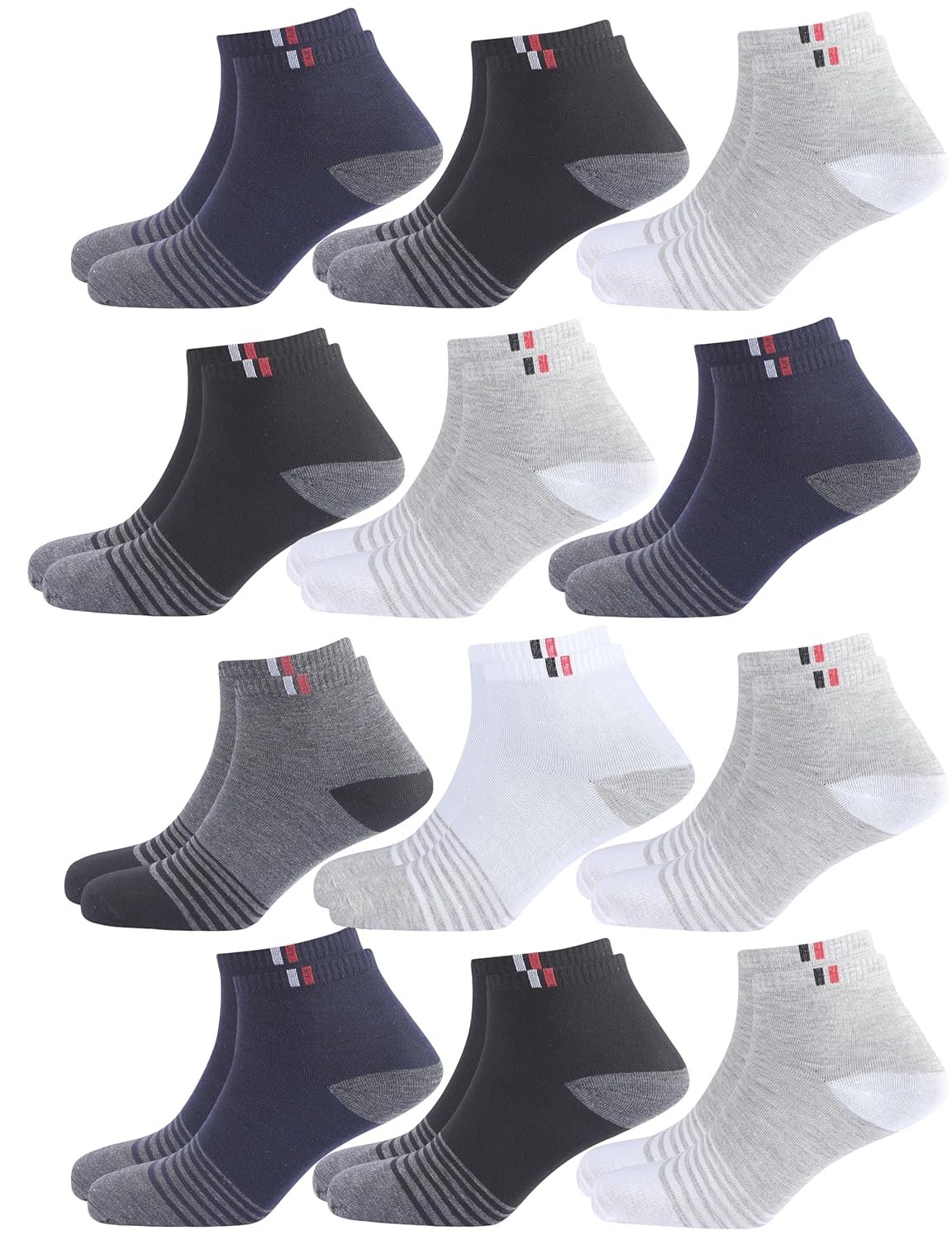 SJeware Polycotton 12 Pairs Stripped Ultra Soft Ankle Socks For Men & Women, Multicolor, Pack Of 12, Free Size,105, Ankle Length
