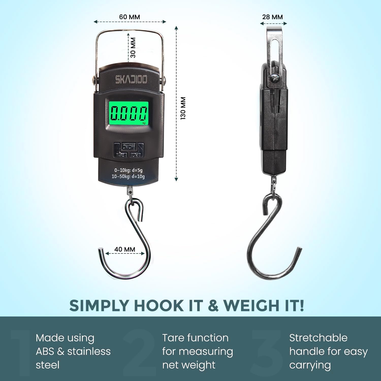 Tare function Steel hook , bigger size for better weight capacity