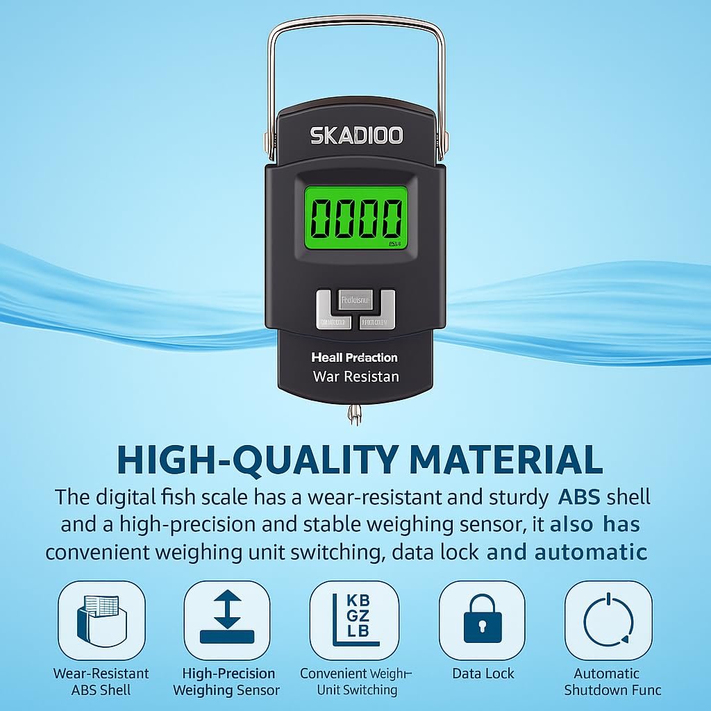 SKADIOO Weight Machine for Luggage 50kg, Luggages Weighing Scale for Flights, Electronic Portable Fishing Hook Type with Digital LCD Screen Used for Gas Cylinder & Travel Bags & Suitcases (Black)