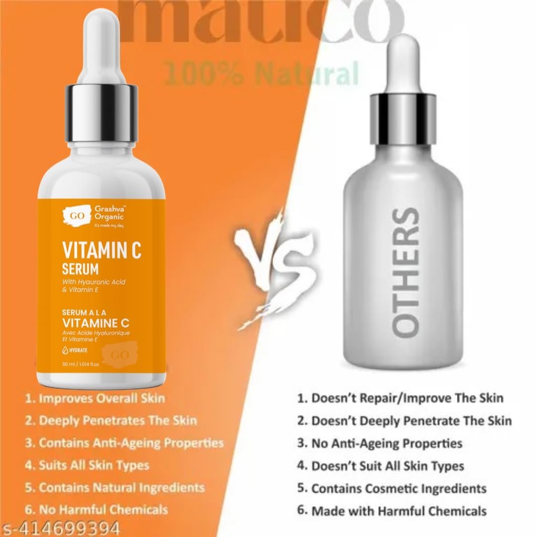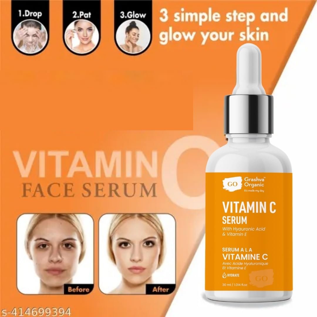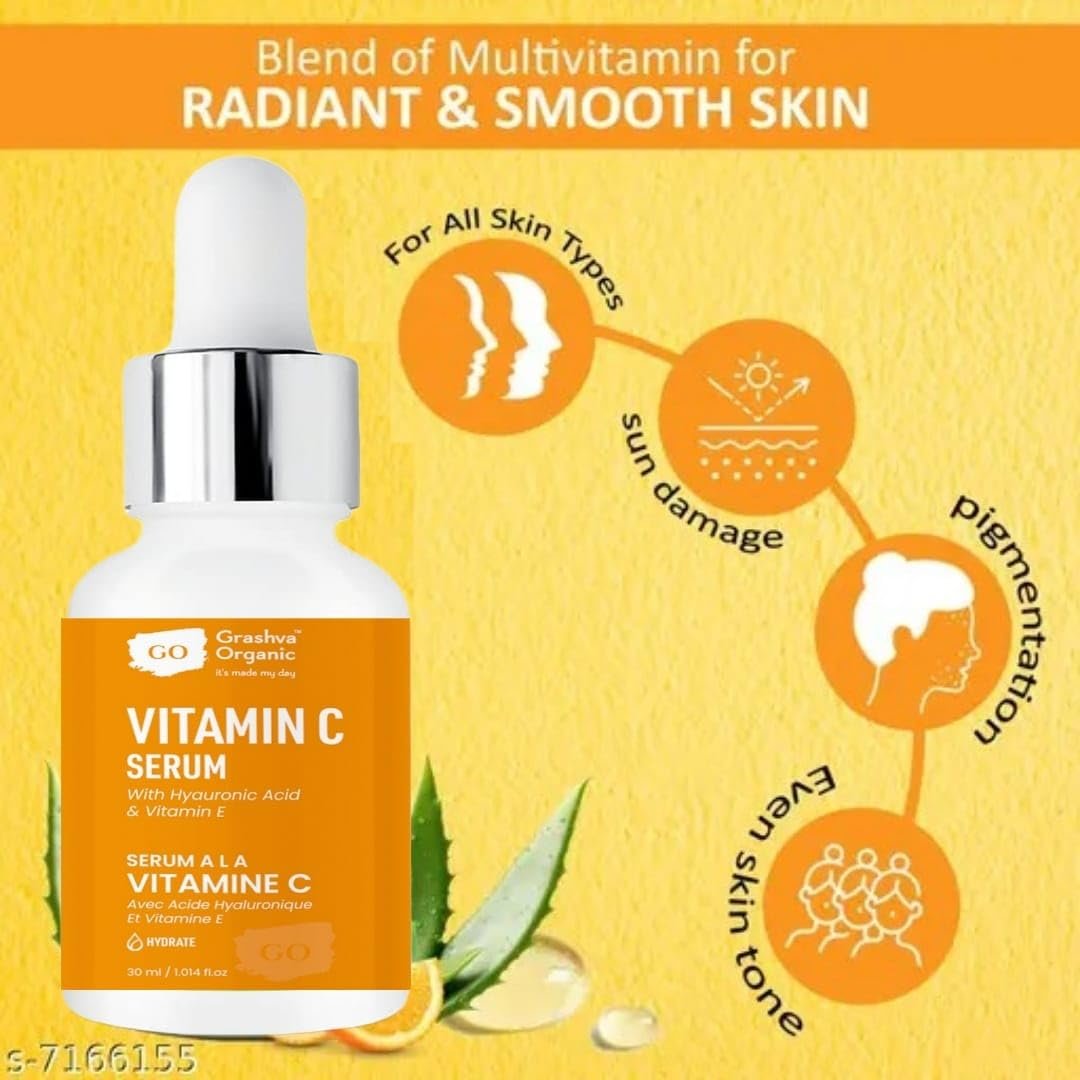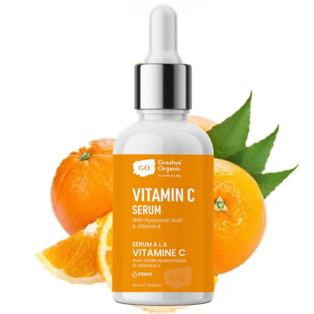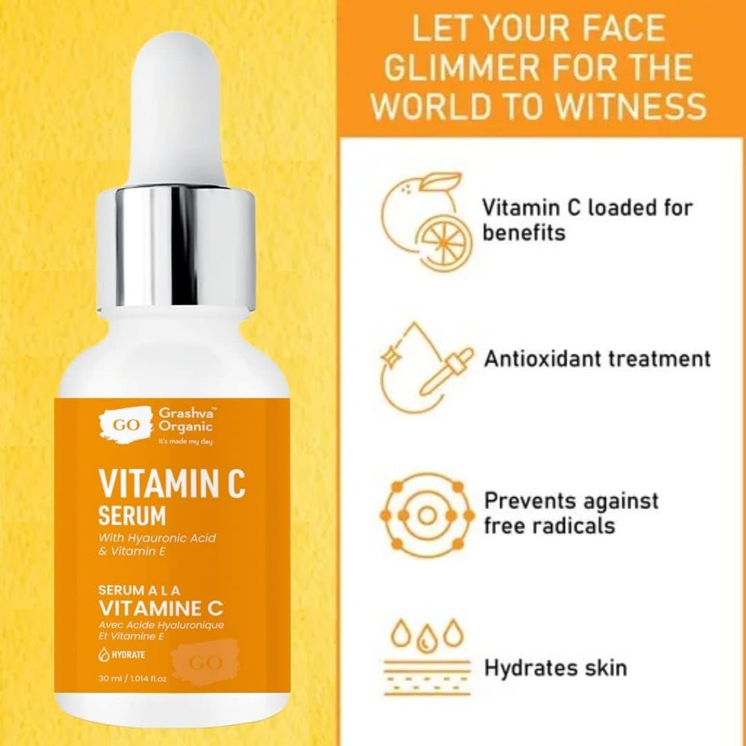 Experience the power of Vitamin C with Grashva Organic’s Vitamin C Serum. This potent serum combines Vitamin C, Hyaluronic Acid, and Vitamin E to nourish and revitalise your skin. Vitamin C, a powerful antioxidant, helps to brighten and even out skin tone, while Hyaluronic Acid deeply hydrates and plumps the skin. Vitamin E provides additional antioxidant protection and nourishment. This lightweight, fast-absorbing serum leaves your skin feeling refreshed, radiant, and youthful. With a 30ml bottle, this serum is a must-have addition to your skincare routine for a glowing, healthy complexion. Incorporate this serum into your daily regimen for best results.