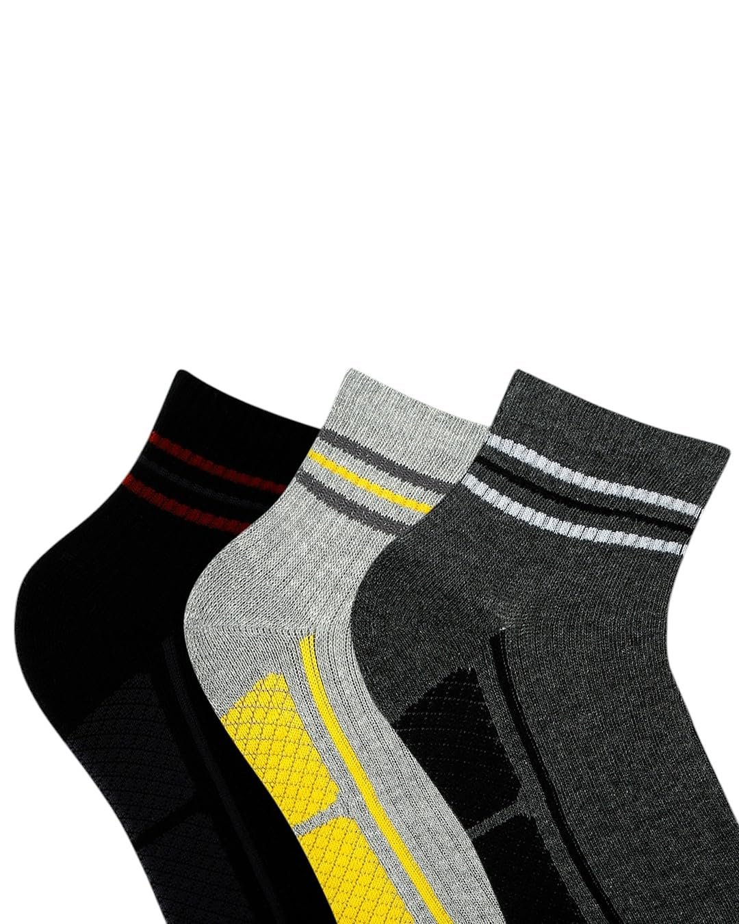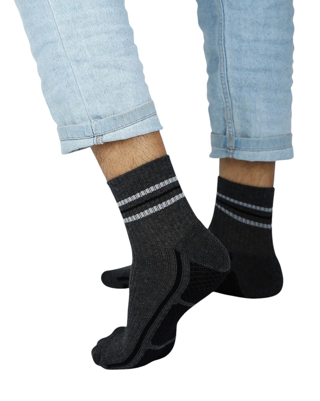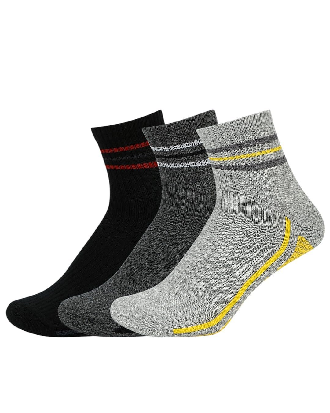 Balenzia Men’s Cushioned High Ankle Sports Socks- Black, L.Grey, D.Grey(Pack of 3)