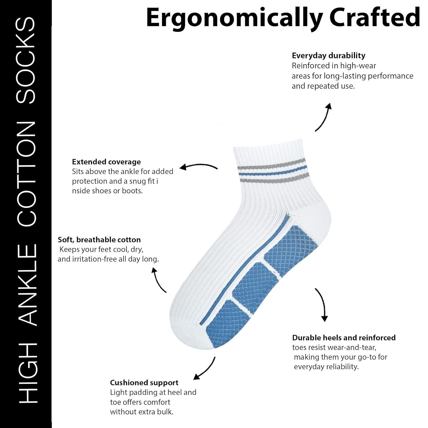 Customers find these socks comfortable, with one mentioning they keep feet feeling great all day, and appreciate their value for money. They receive positive feedback for their softness and fit, being suitable for 9-11 sizes. The fabric quality and thickness receive mixed reviews – while some praise the cotton material, others note it’s not pure cotton, and while some find them thick, others say they’re too thick. Durability is also mixed, with some finding them durable while others report they tore after two uses.
