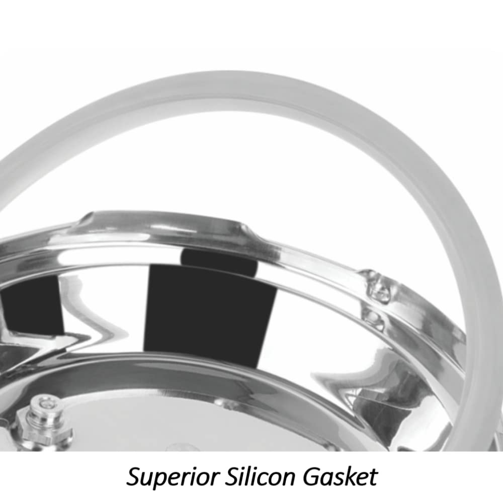 SUPERIOR SILICON GASKET: Pressure cooker, in case there is any blockage of the vent tube, the gasket will bulge and steam will release through the slot. Thus making it extremely safe for usage.