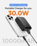 30.0W Fast Charging: Supports up to 30.0W output and input charging via PD3.0, PPS Built-in USB-C cable and USB-U port. Up to 22.5W fast charging via QC3.0 USB-A port(*Multi-Output: 22.5W Max). Compatible with mobile phones, tablets, laptops and more.