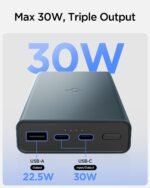 30W Fast Charging: Supports up to 30W output and input charging via PD3.0, PPS Type-C ports and up to 22.5W fast charging via QC3.0 USB-A port(*Multi-Output: 22.5W Max). Compatible with mobile phones, tablets, laptops and more.