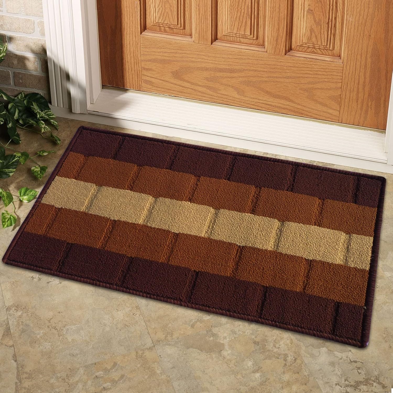 Status Contract Anti Slip Front Door Mat|(38x58cm) Living Room Rug for Entrance Door|Polypropylene Floor Mat for Home|Essential Small Rug for Office, Bedroom & Kitchen| (Brown), Rectangular