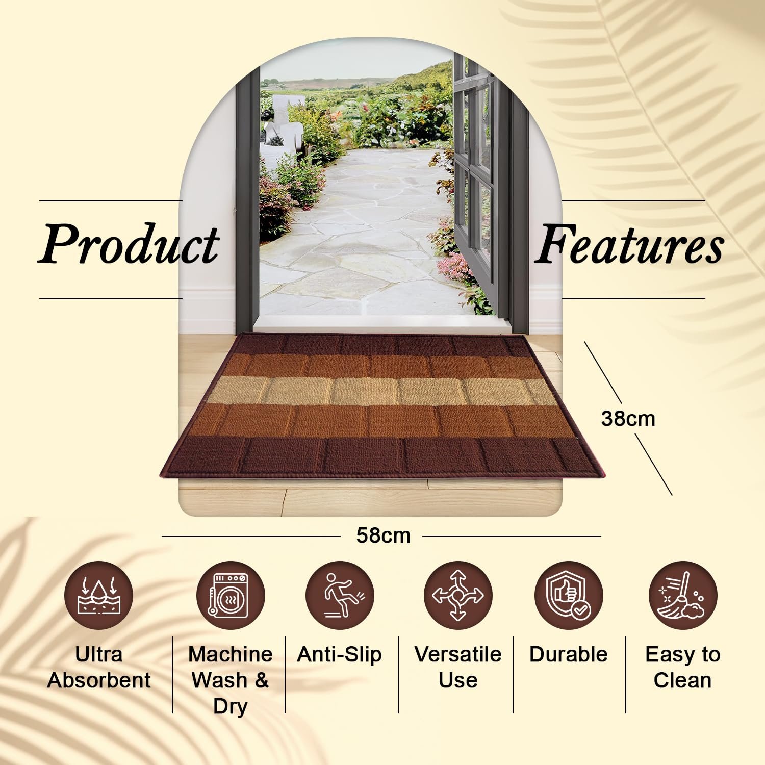 Secure footing: Anti-skid backing ensures your safety by preventing slips and slides, keeping you steady as you enter and exit. Ideal for households with children, elderly individuals, or pets, this feature provides peace of mind in areas prone to wet or slippery conditions, such as in the home office, living room, bathrooms, or kitchen entrances.