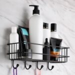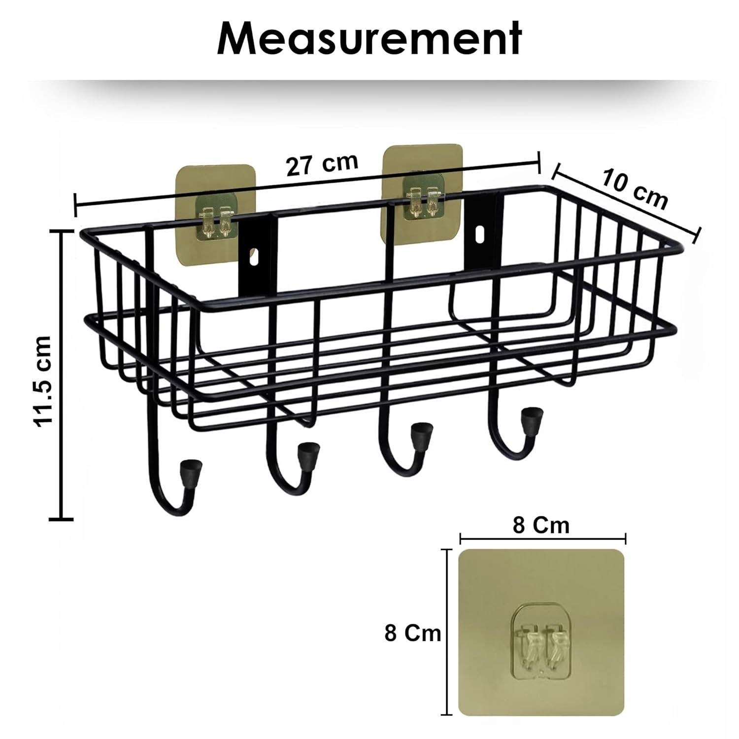 Versatile Home Decor Item: Enhance your home decor with this elegant self adhesive bathroom shelf in black powder coating, perfect for organizing kitchen and bathroom accessories, adding both style and functionality to your space. Can be used as kitchen rack with self adhesive hook to keep kitchen accessories items, home decor items, tooth brush holder bathroom, bathroom organiser without drill, book organizer, corner shelf for kitchen