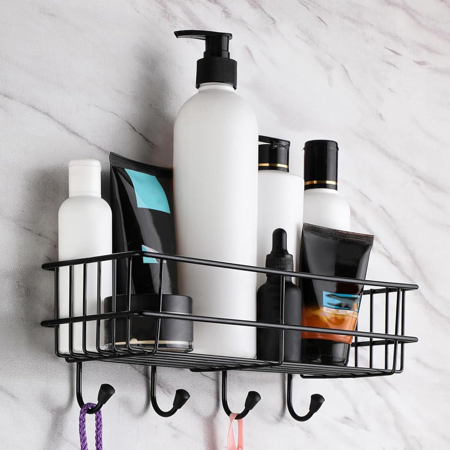 Easy Installation with self adhesive hook : No need for drilling or tools! Easily install this bathroom shelf for wall adhesive using the provided magic stickers, ensuring a secure hold on various surfaces. An ideal storage rack for bedroom, brush holder for bathroom, home decoration items, kitchen storage, brush stand, kitchen organizer rack shelf, toothbrush holders for bathroom, storage organizer for renters and homeowners alike