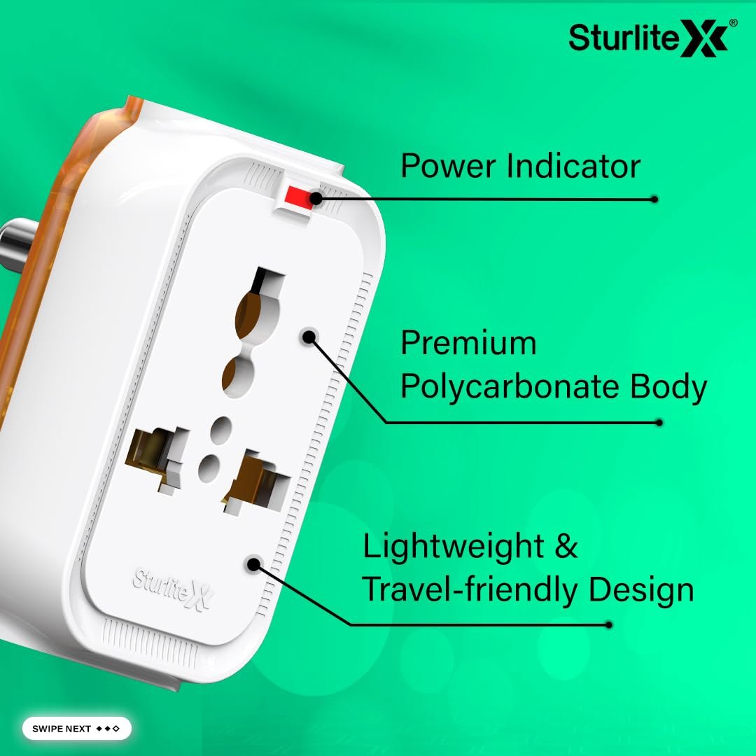 Sturlite Alyx 3 Pin Plug| 2-Pin & 3-Pin Socket| Universal AC Travel Adapter| ABS Strong Body Socket| Compact Converter Plug for Travel, Home & Office Use – Pack of 1