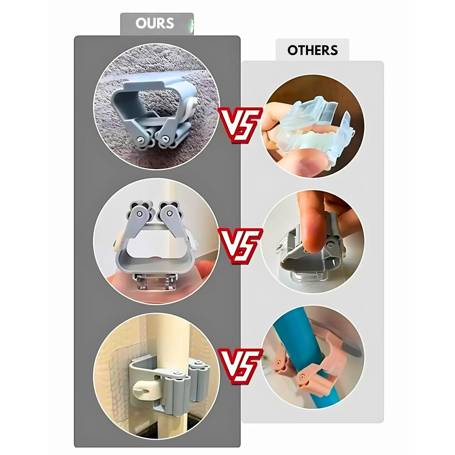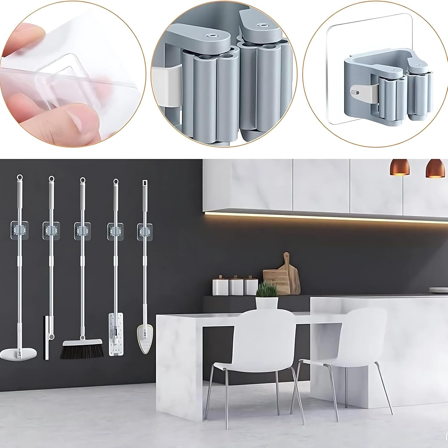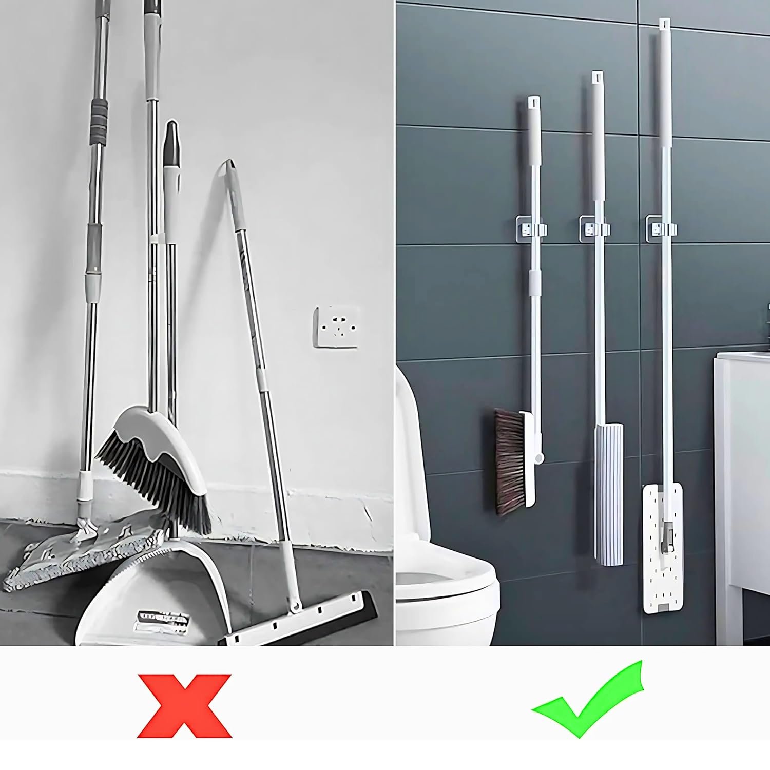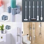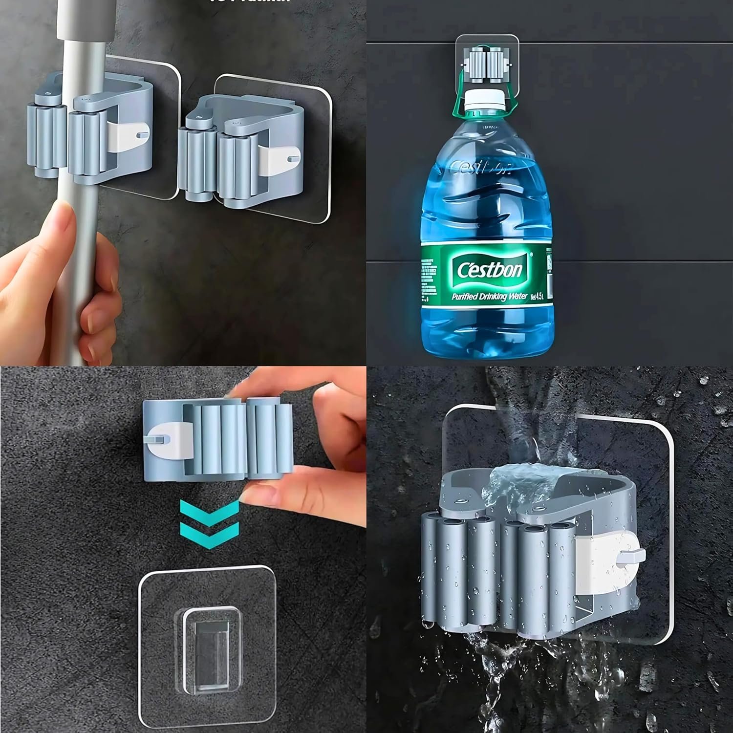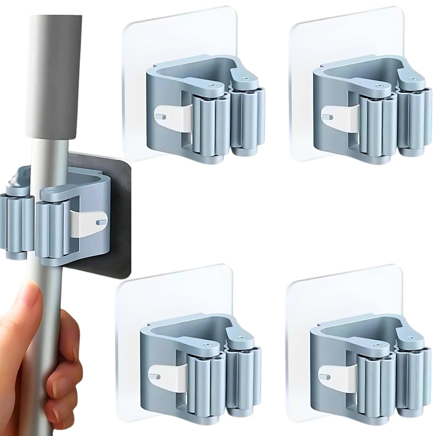 SUNCHHAYA Self-Adhesive Wall Hooks for Mop Holder, Broomstick Holder for Bathroom, Wall Mounted Heavy Duty Wall Hooks Universal for Home, Kitchen, Garden (Grey, Pack of 4)