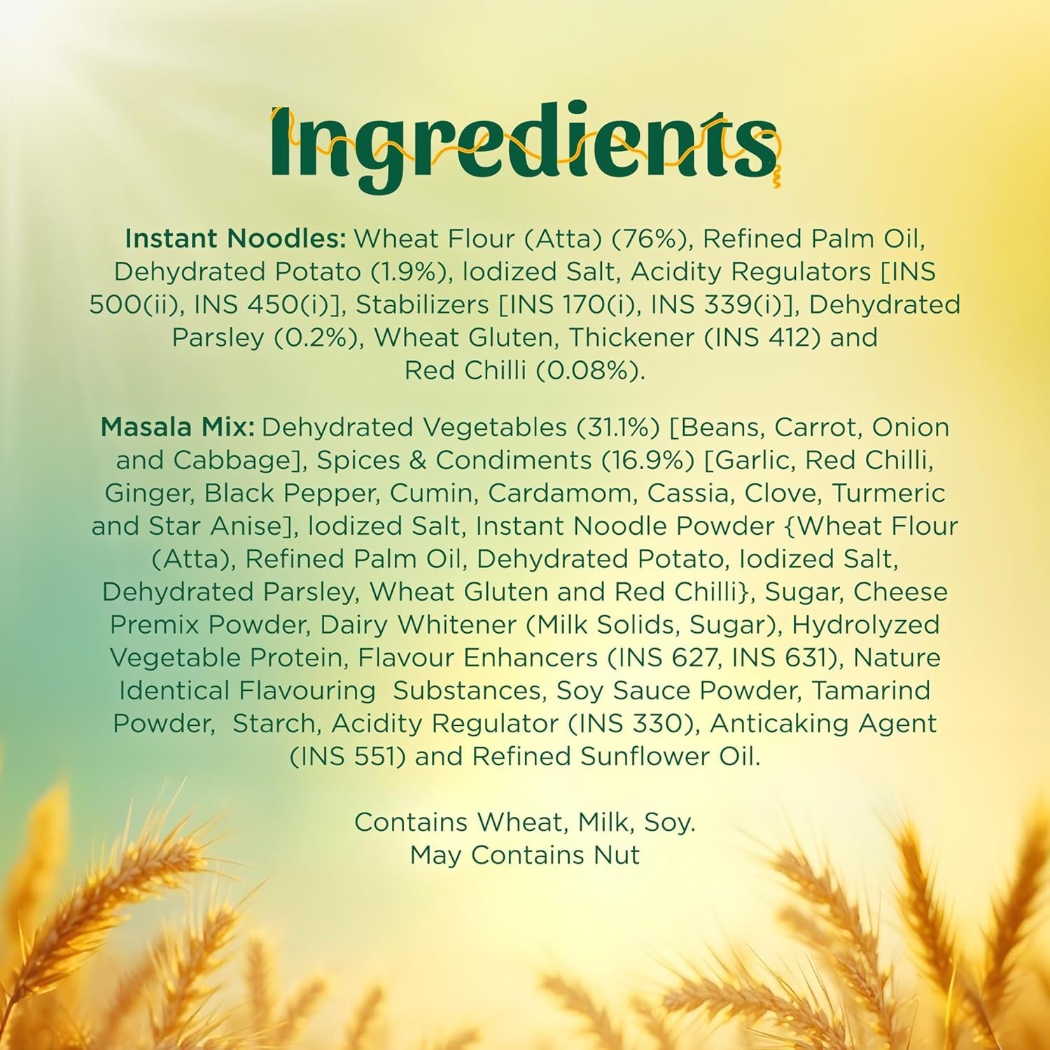 MADE WITH AASHIRVAAD ATTA: The goodness of Aashirvaad atta in your favourite long, non-sticky & slurpy YiPPee! Noodles