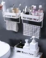 TEKCOOL Wall Shelves Kitchen Bathroom Shelf Self-Adhesive Sticker Hook Multipurpose Wall Holder Bathroom Storage Rack Box Strong Shower Rack Shelf (Set of 2 Bath Self and 1 Towel) – Plastic
