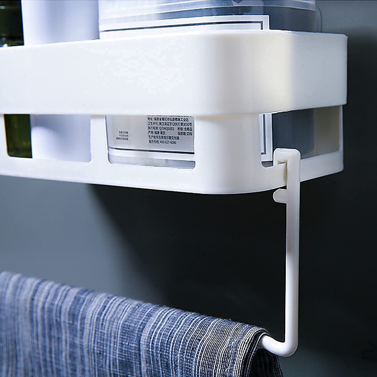 TEKCOOL Wall Shelves Kitchen Bathroom Shelf Self-Adhesive Sticker Hook Multipurpose Wall Holder Bathroom Storage Rack Box Strong Shower Rack Shelf (Set of 2 Bath Self and 1 Towel) – Plastic