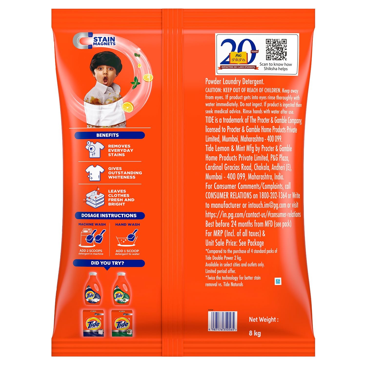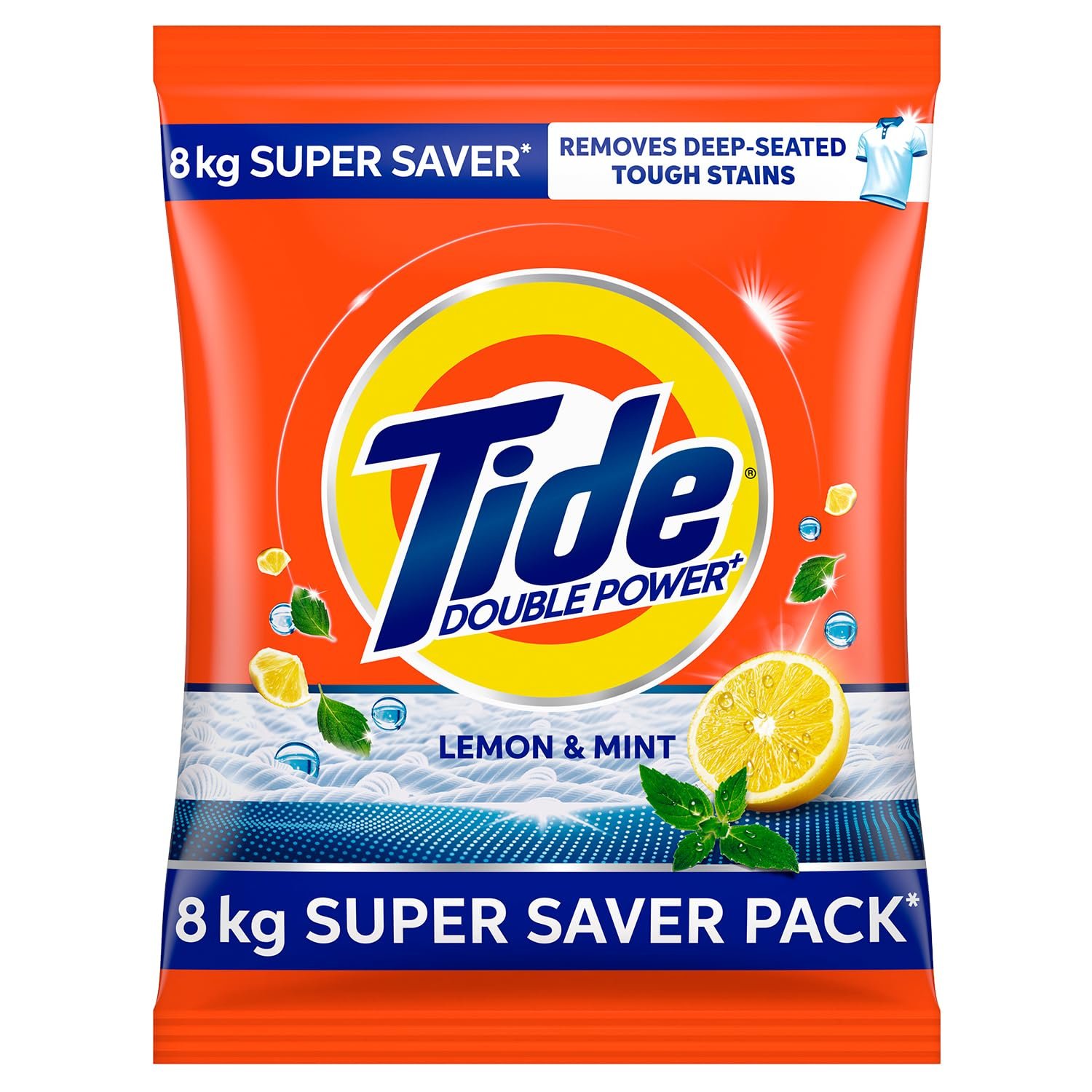 Tide Plus Detergent Washing Powder – 8kg Super Saver Pack | Lemon & Mint Fragrance| Removes deep-seated Oil, Gravy, Tea Stains | World’s No. 1 Detergent Brand