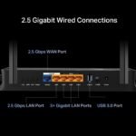 2× 2.5G Ports — 1× 2.5 Gbps WAN port, 1× 2.5 Gbps LAN port and 3× 1 Gbps LAN ports offer high-speed data transmissions.