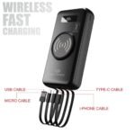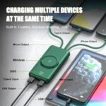 You can charge your Qi-enabled devices wirelessly, making charging a breeze. 5W, 7.5W, 10W, and up to 15W for wireless charging. It comes with a robust 20W Type-C and Lightning input and output, and allows simultaneous charging of four devices, ensuring a seamless and efficient charging experience without any delays.