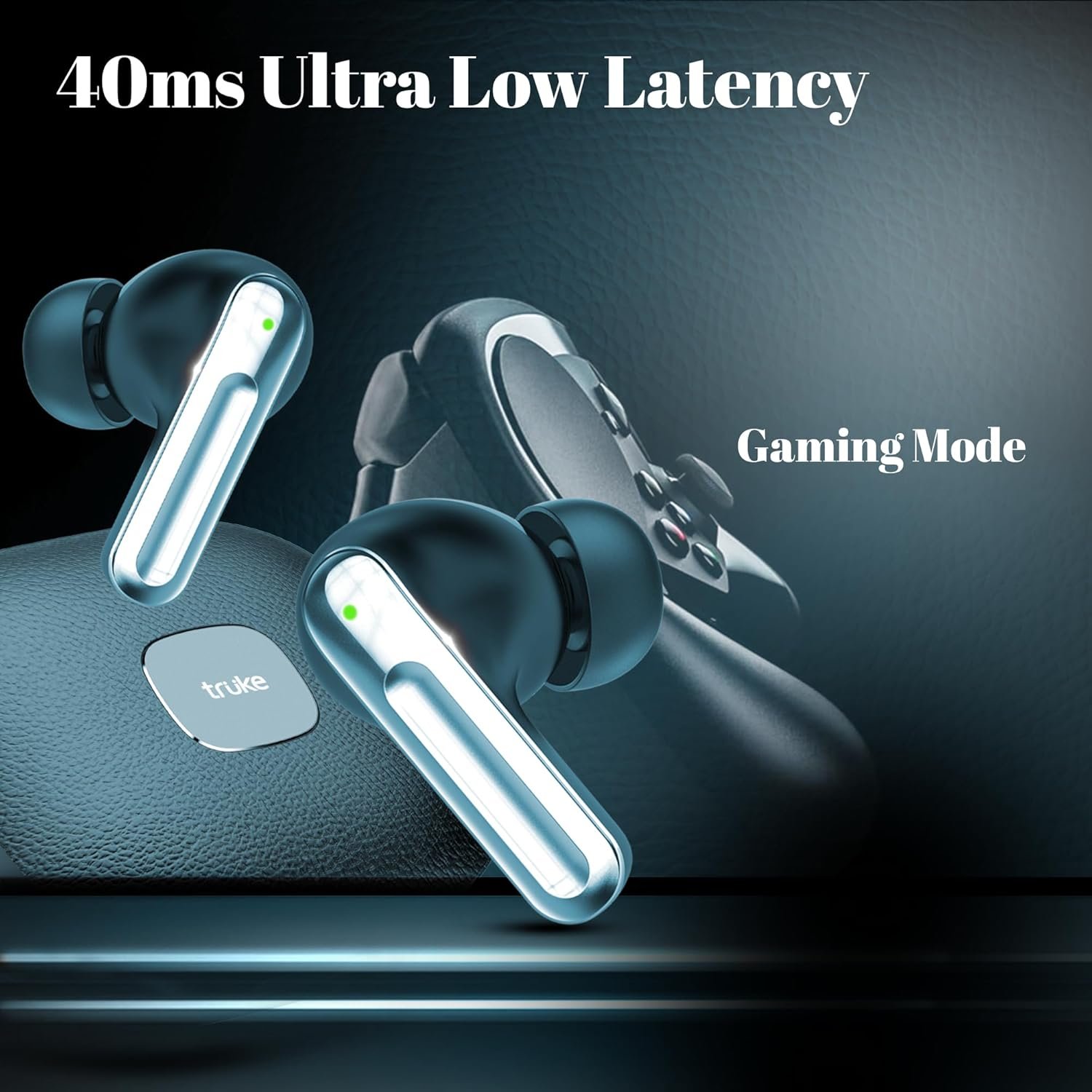 truke Mega 9 New Launch True Wireless in Ear Earbuds W/ 24-Bit Lossless Spatial Audio, 70H Battery Fast Charge Ear Buds, Leather Finish, 13mm Speakers TWS, 40ms Ultra Low Latency, 4Mics ENC