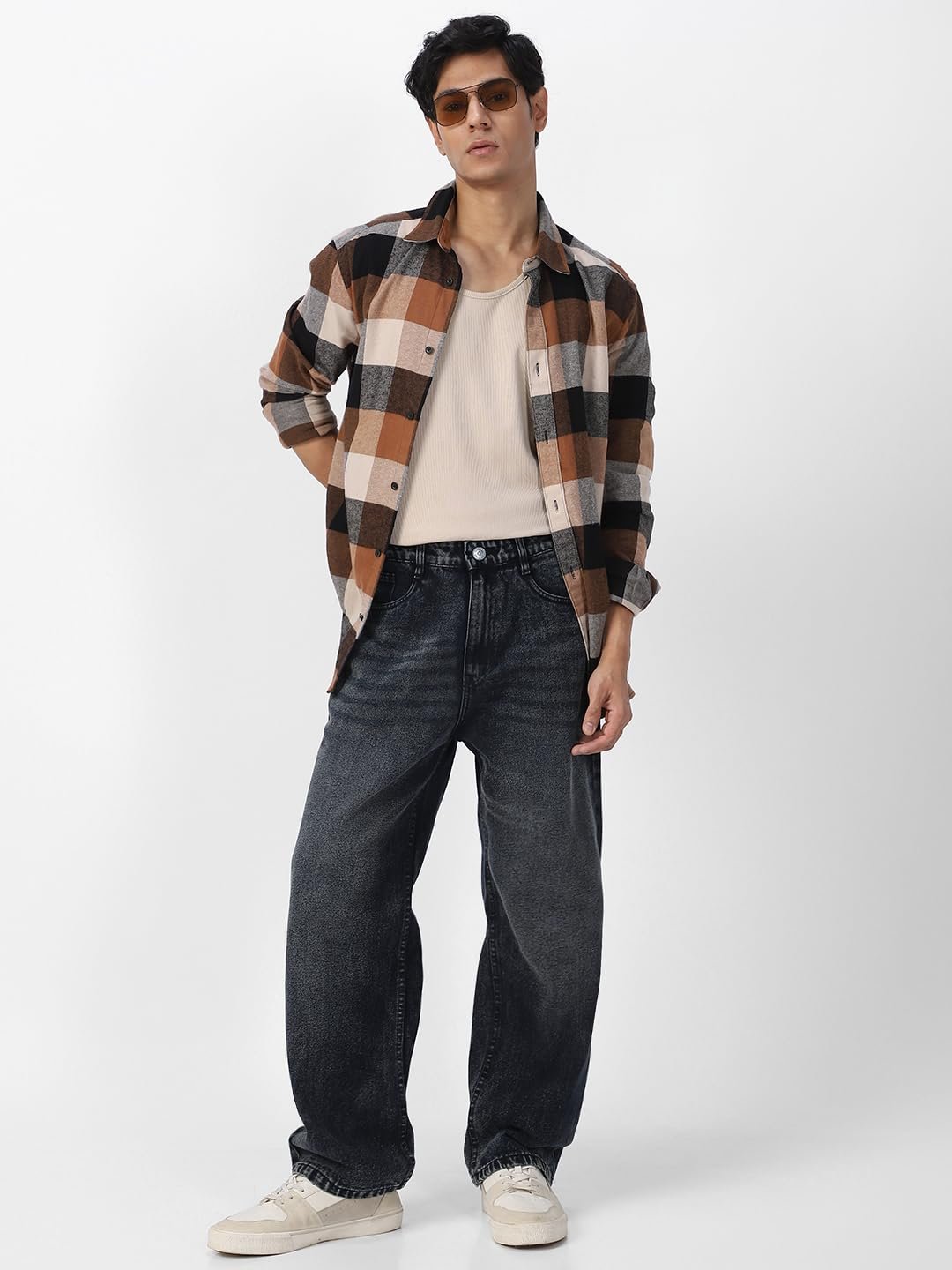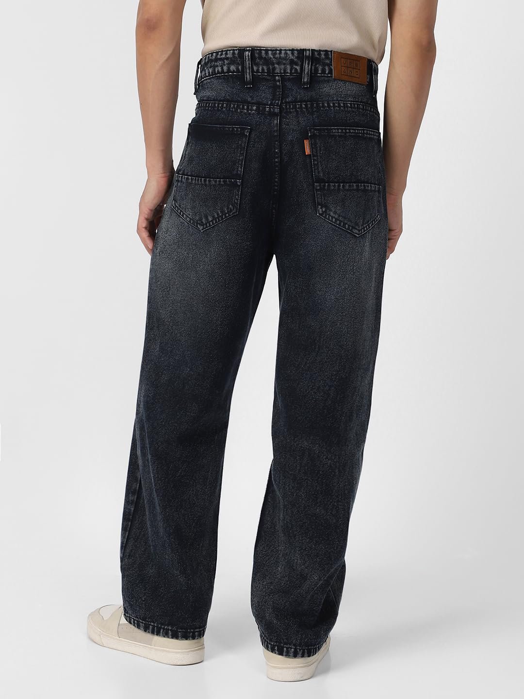 Urbano Fashion Men’s Loose Mid Rise Baggy Fit Washed Jeans Non-Stretchable